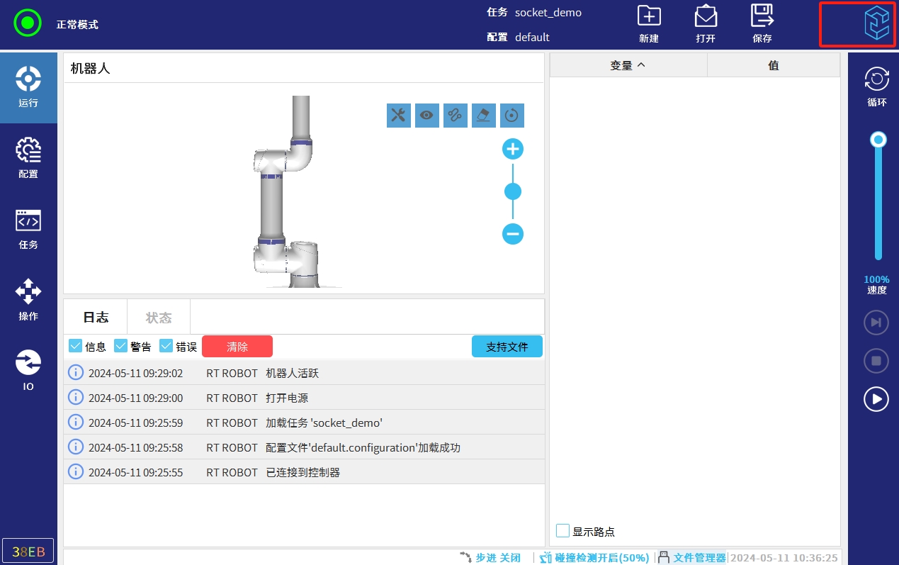 外部设备可以往30001直接发送机器人脚本,机器人处于远程模式,机器人就会运动。