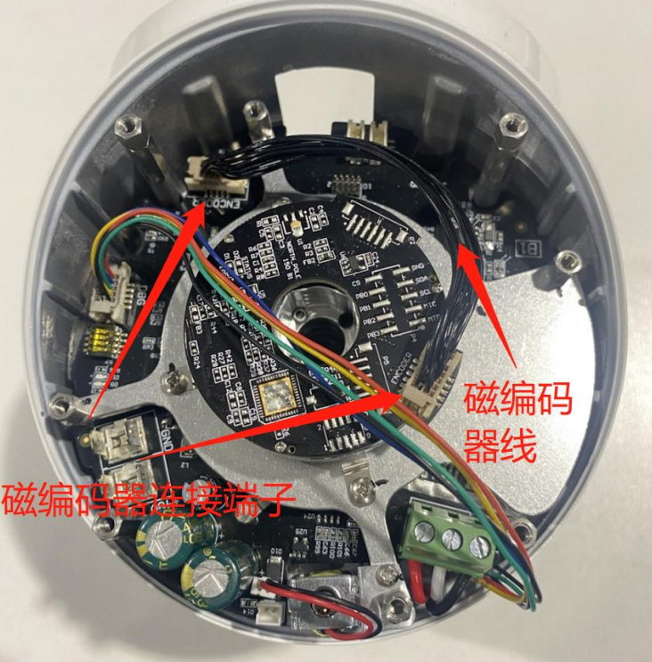 机械臂关机断电,拆下报警关节端盖,检测磁编码器线缆是否脱落,以及线缆是否断裂或者被挤压变形。如果有上述情况,先重新插拔磁编线建议更换磁编线。如果无上述情况,请进行下一步排查。