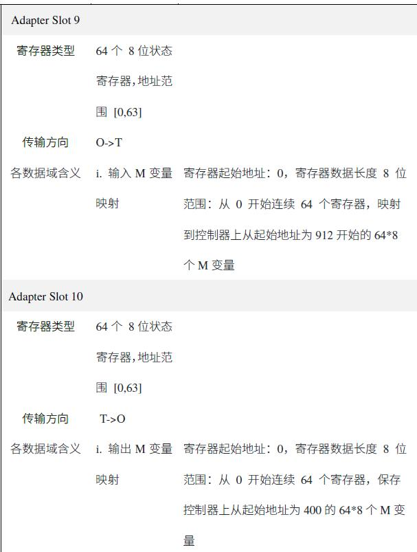1、NG28娱乐机器人EIP通讯支持10个适配器插槽,对应不同功能,具体请查看NG28娱乐机器人EC系列通讯手册中第4章Ethernet/IP接口与协议。