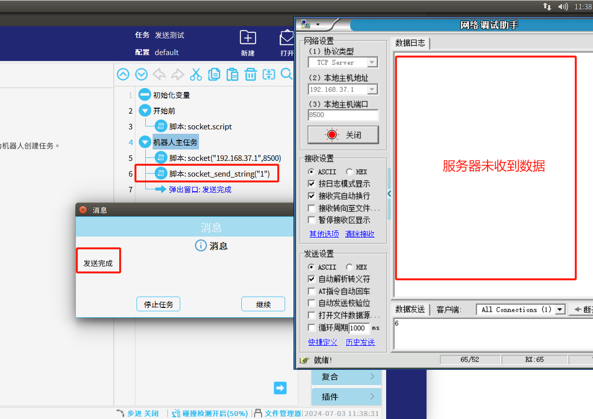 1.NG28娱乐单纯的使用发送指令例如:socket_send_string(str, socket_name="socket_0")未判断发送是否成功时,如果当机器人客户端当时已经与服务器断开连接了或发送失败后程序依然往下继续运行,如图2-1所示。