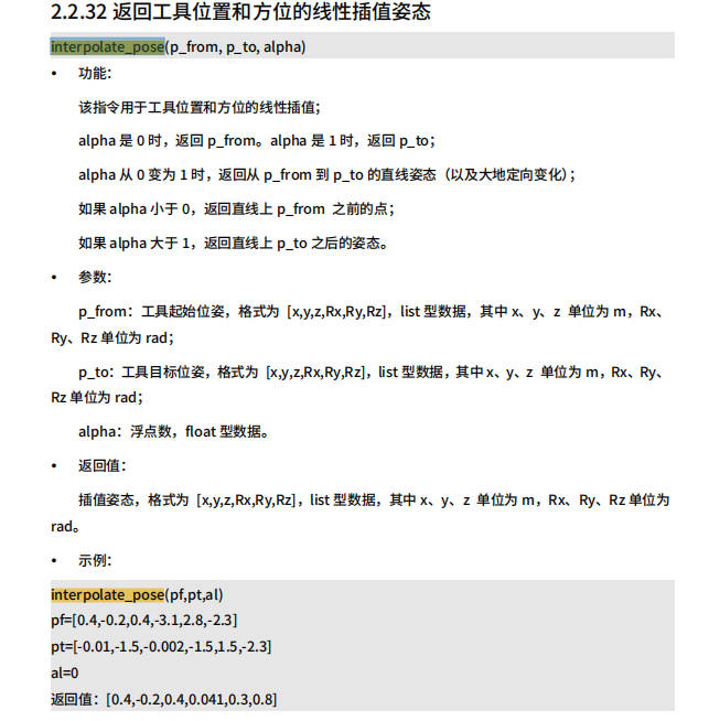 interpolate_pose此指令适用于有规律/等间距的矩阵 只需示教四个顶点点位即可完成矩阵取放物料,可以用于外部设备随机发送矩阵取料/放料位置 机械手实现矩阵抓取