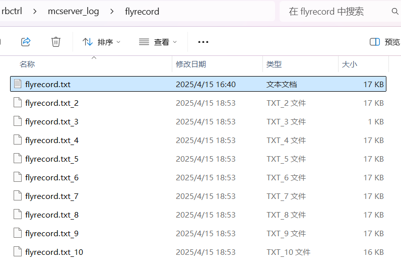 2、 拷贝出的日志只有mcserver-all,没有flyrecord文件和runlog文件?