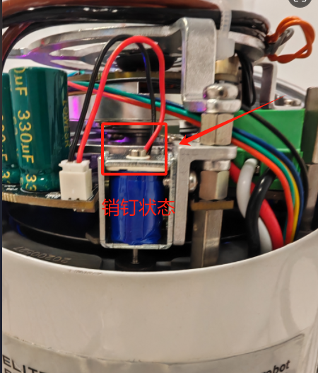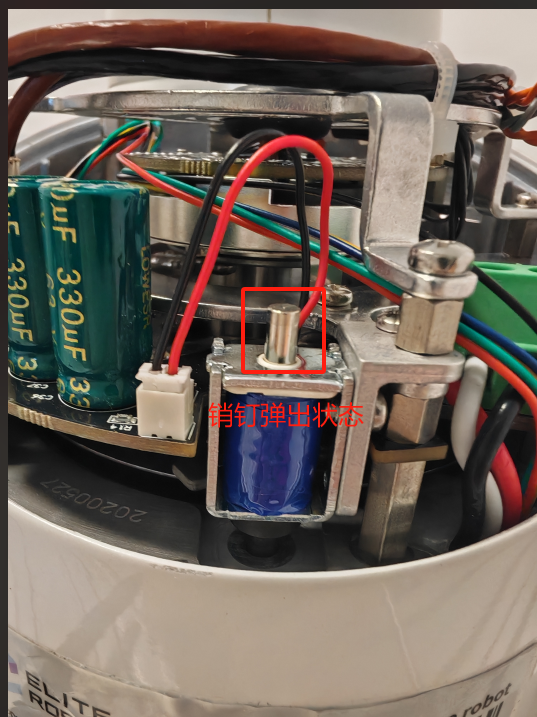 当机器人本体上电后电磁铁吸合,销钉会处于吸合状态,如下图: