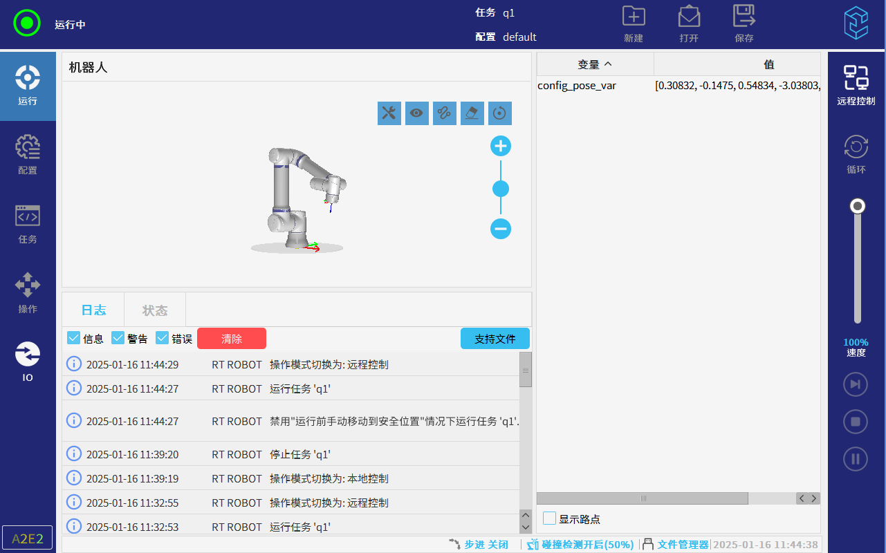 29999端口还可以打开或切换不同的任务和配置,具体使用指令可查询EliRobot Dashboard手册,手册下载可至官网或咨询NG28娱乐技术人员技术资料_机器人技术-NG28娱乐机器人