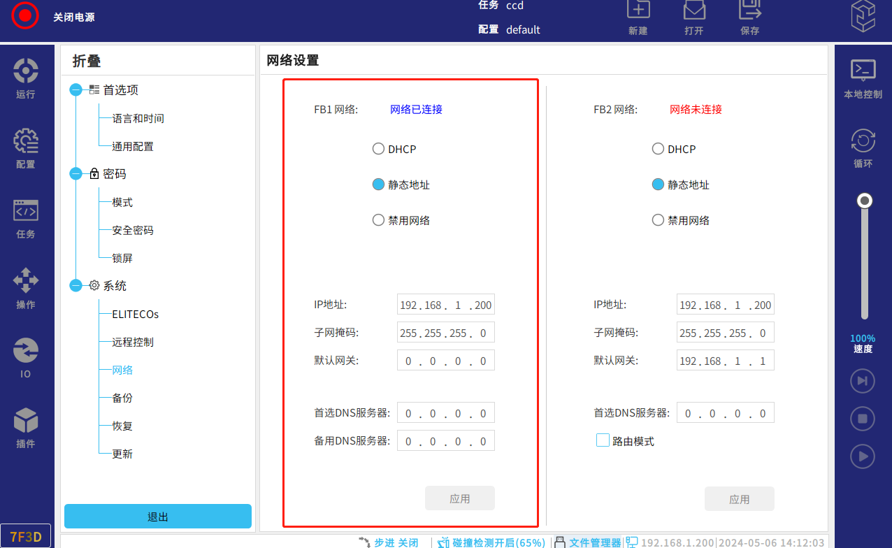 机器人做从站,modbus通讯使用机器人控制柜FB1网口或FB2网口,连接控制柜和电脑,