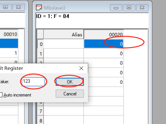 点击值,输入数据,即可在modbus slave上查看到写入的值