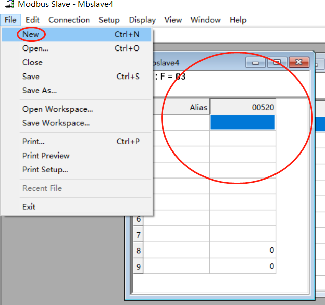 打开modbus slave,可点击File--new,会出来一根新的监视表,