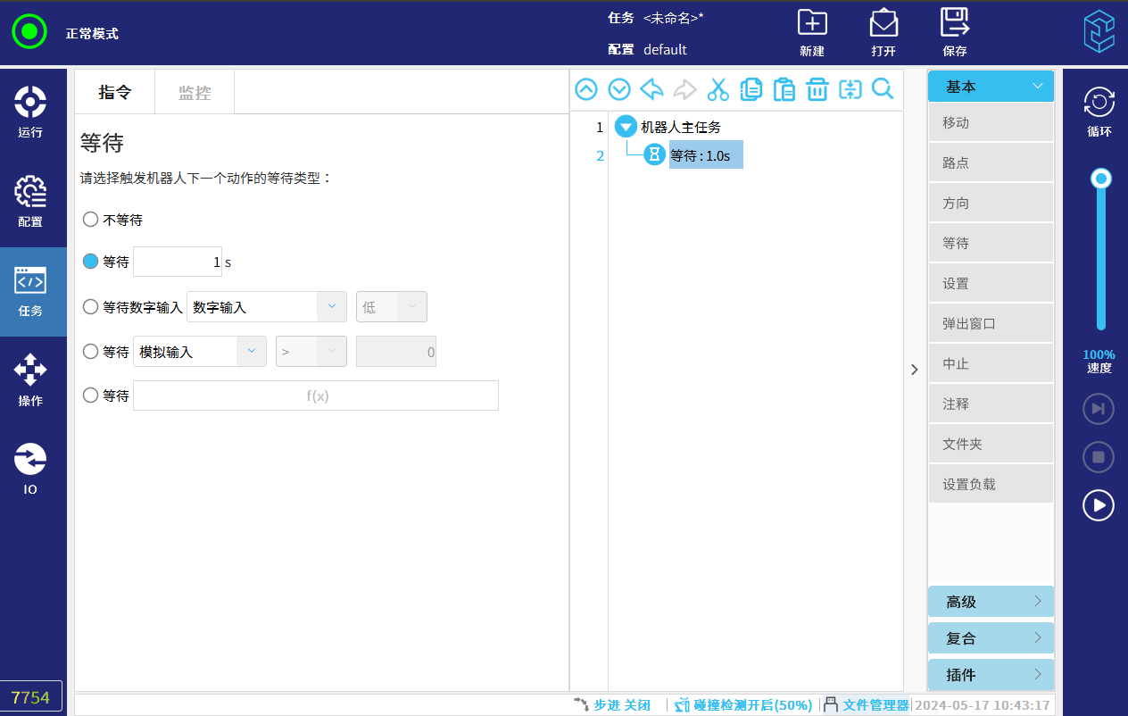 (3):减少程序一些没必要的等待时间(与相机拍照/PLC/气缸/夹爪 等外部设备信号交互时) 比如:吸真空只需要0.5S就可以吸取产品 程序内设置1S 可以更改为0.5S