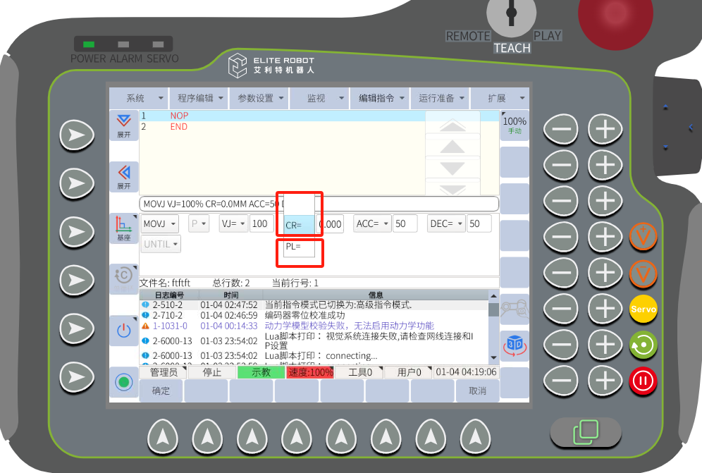(2):提高机械手运动指令的速度,加速度,整体运行倍率 建议最大速度: